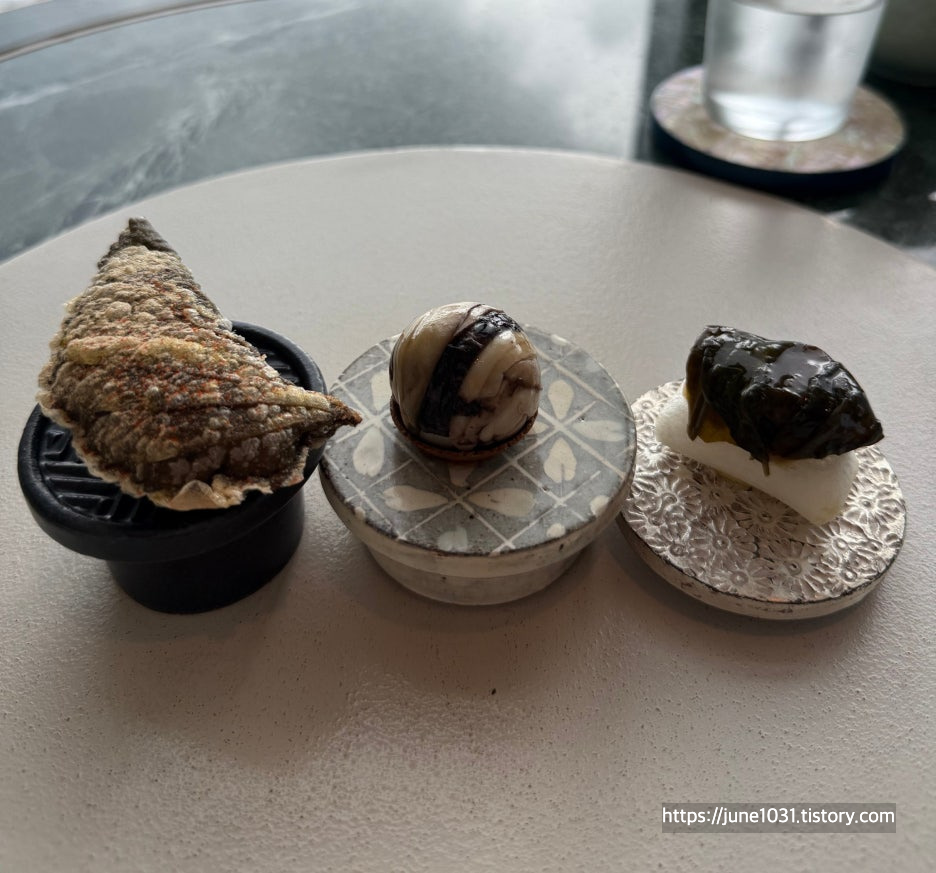 된장 숙성한 민어회가 진짜 엄청 고소했고, 한과의 바삭함과 잘 어울려서 좋았다.